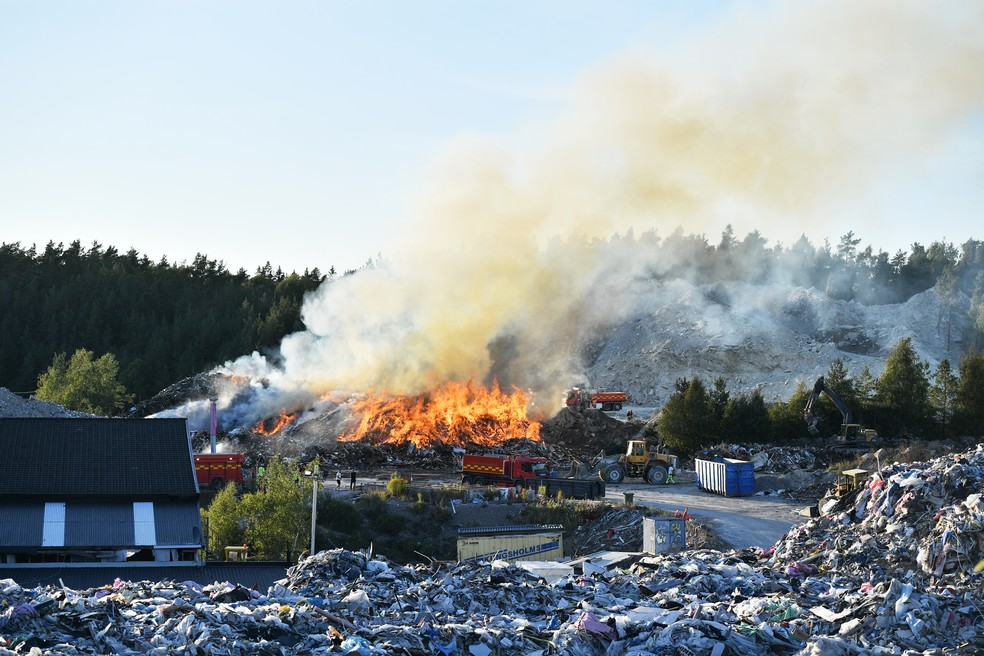 Pilha de resíduos abandonados por empresa sueca pega fogo em Botkyrka — Foto: STINA STJERNKVISTTT NEWS AGENCYAFP