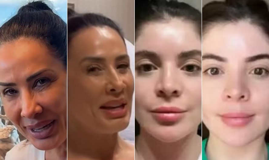 Scheila Carvalho e Gkay se arrependeram de colocar ácido hialurônico no rosto e decidiram retirar a substância por meio de procedimento estético — Foto: Reprodução/ Instagram