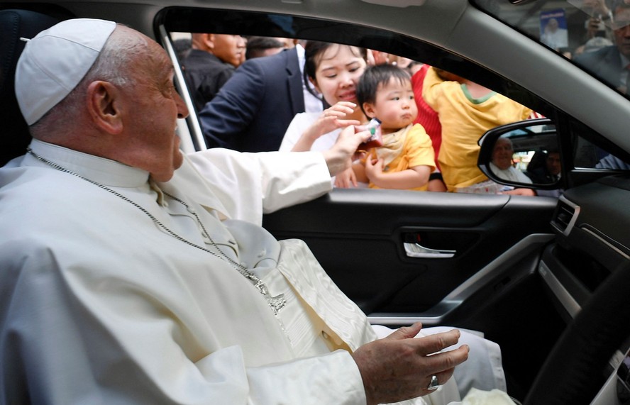 Papa Francisco abençoa criança enquanto deixa Jacarta,na Indonésia,com destino a Papua Nova Guiné,em tour pelo Pacífico — Foto: Vaticano