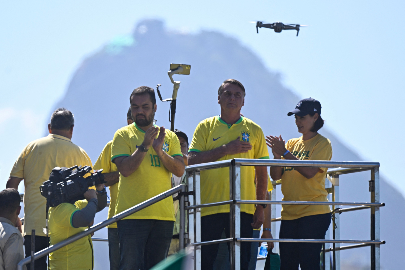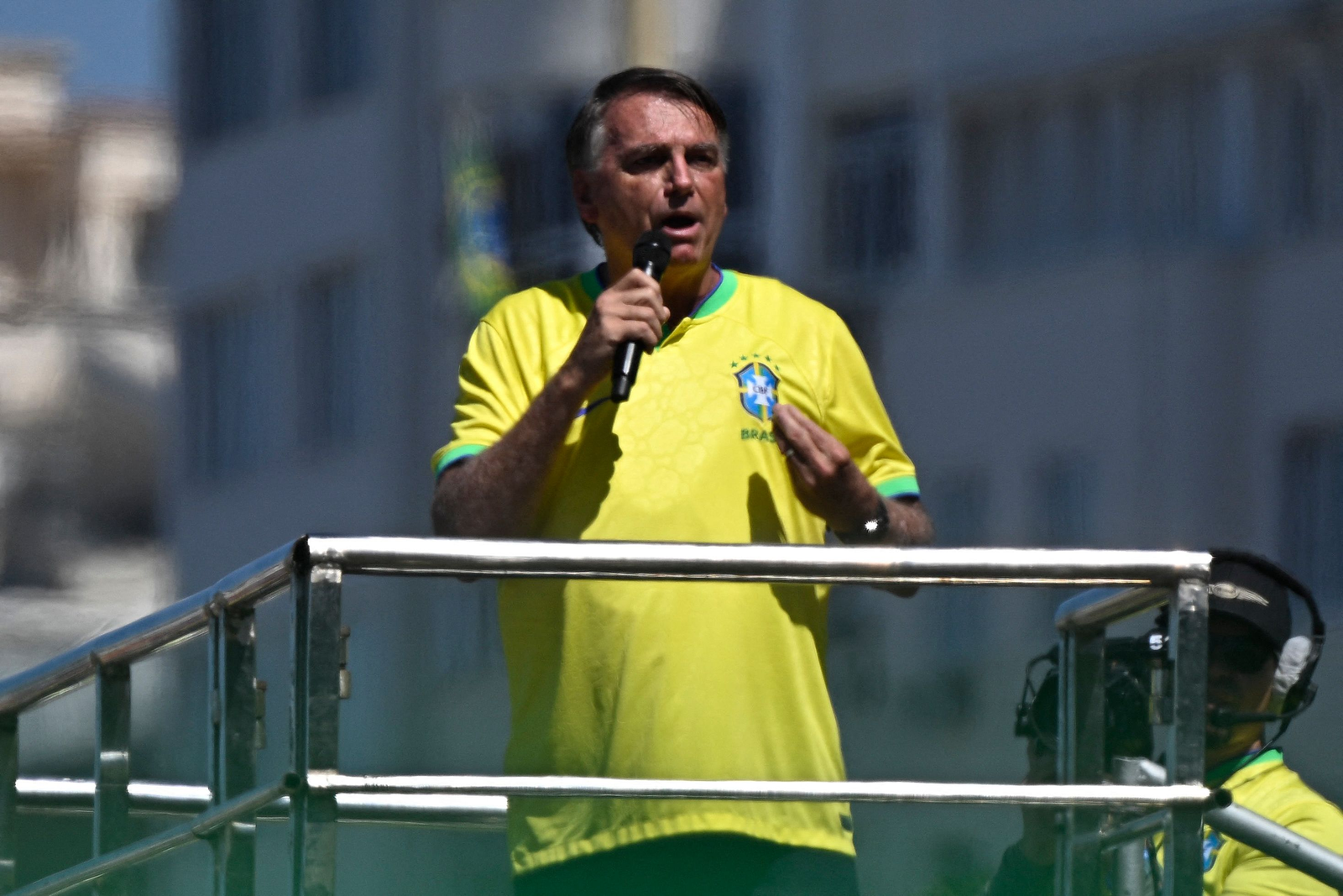 Bolsonaro discursa na Praia de Copacabana — Foto: MAURO PIMENTEL/AFP