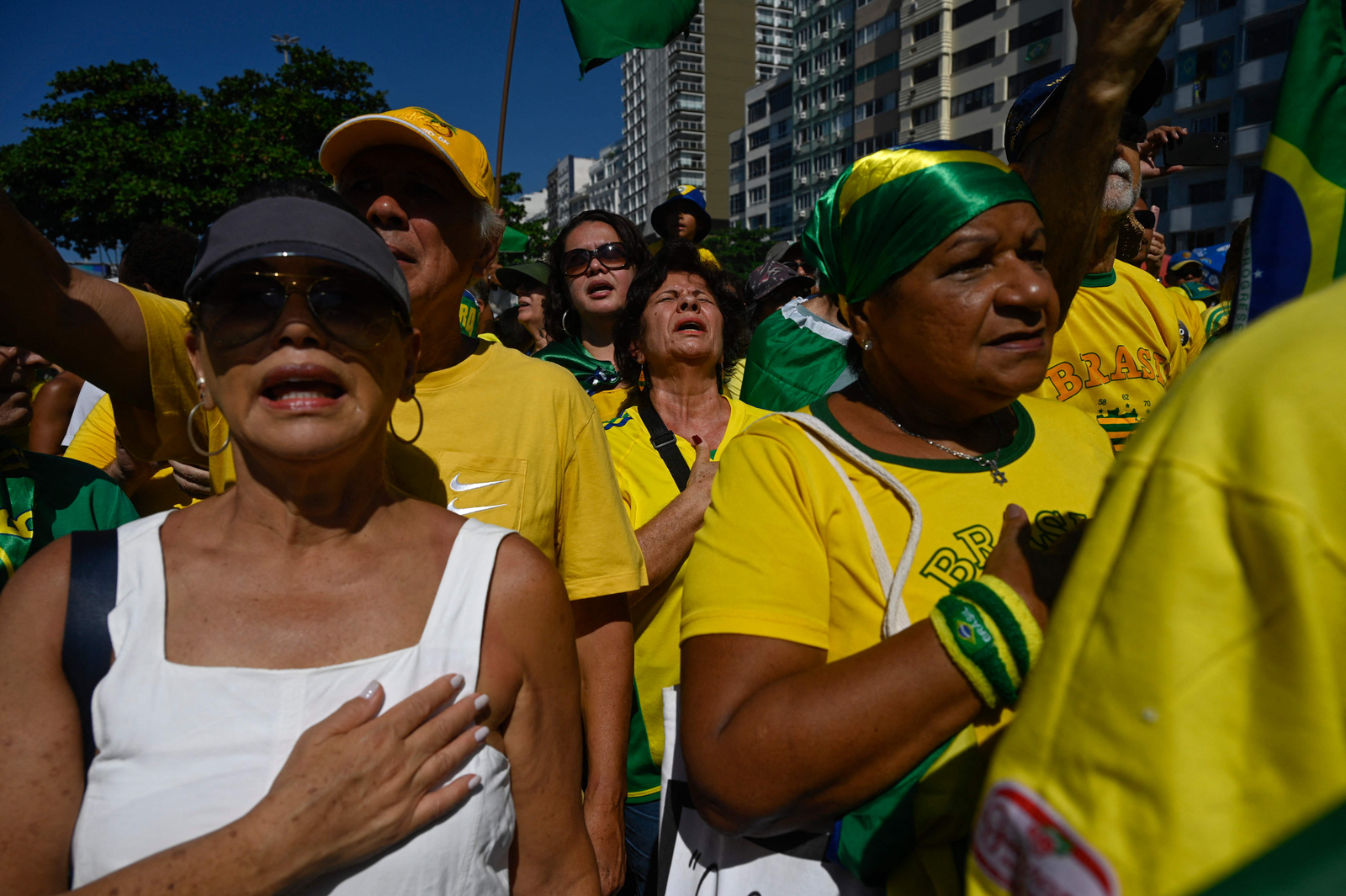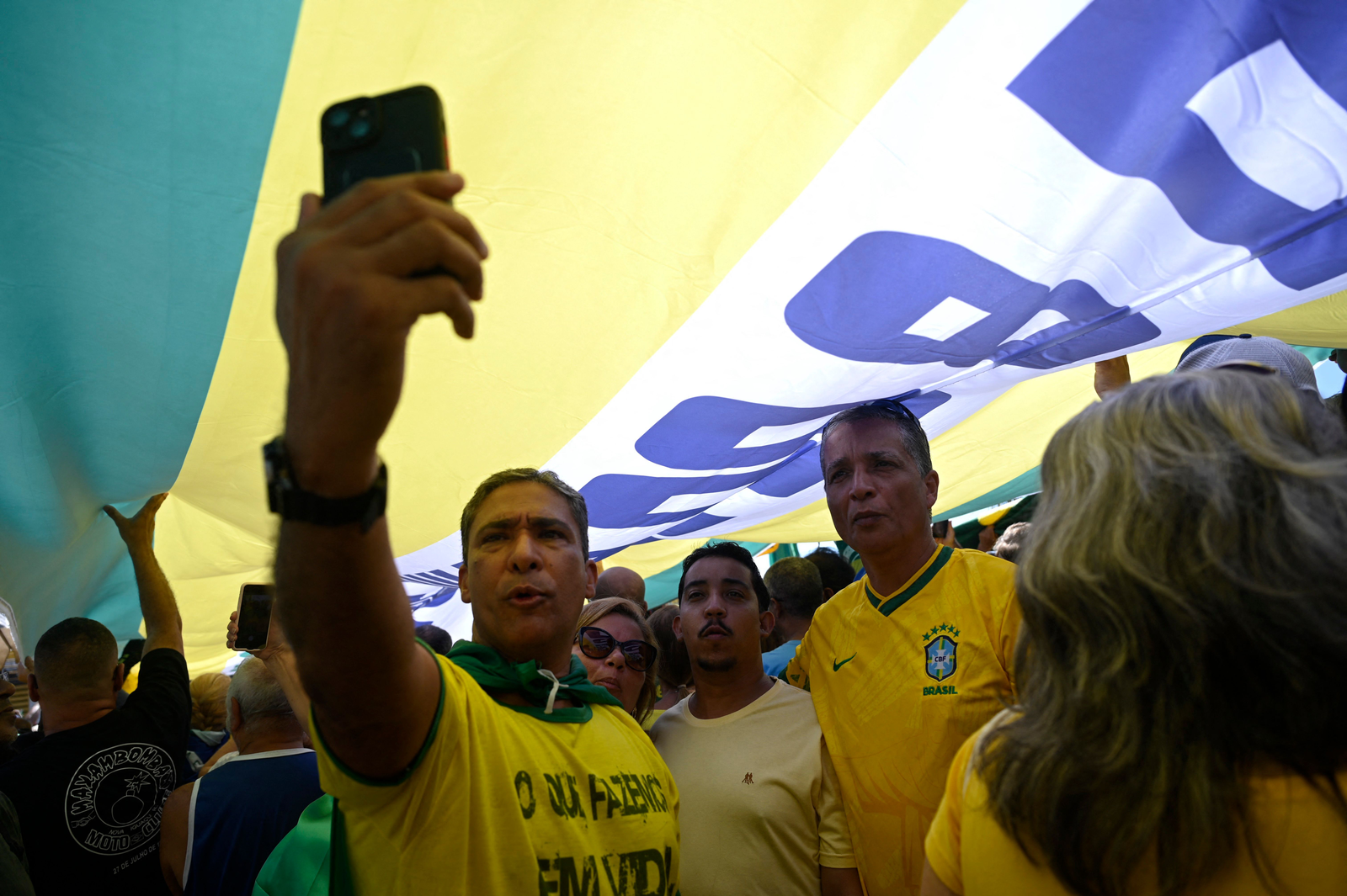 Apoiadores de Bolsonaro em ato no Rio — Foto: MAURO PIMENTEL/AFP