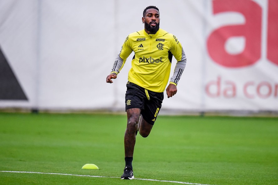 Gerson se reapresentou no Flamengo após partidas pela seleção brasileira,treinou com o grupo e será titular contra o Bahia — Foto: Marcelo Cortes / Flamengo