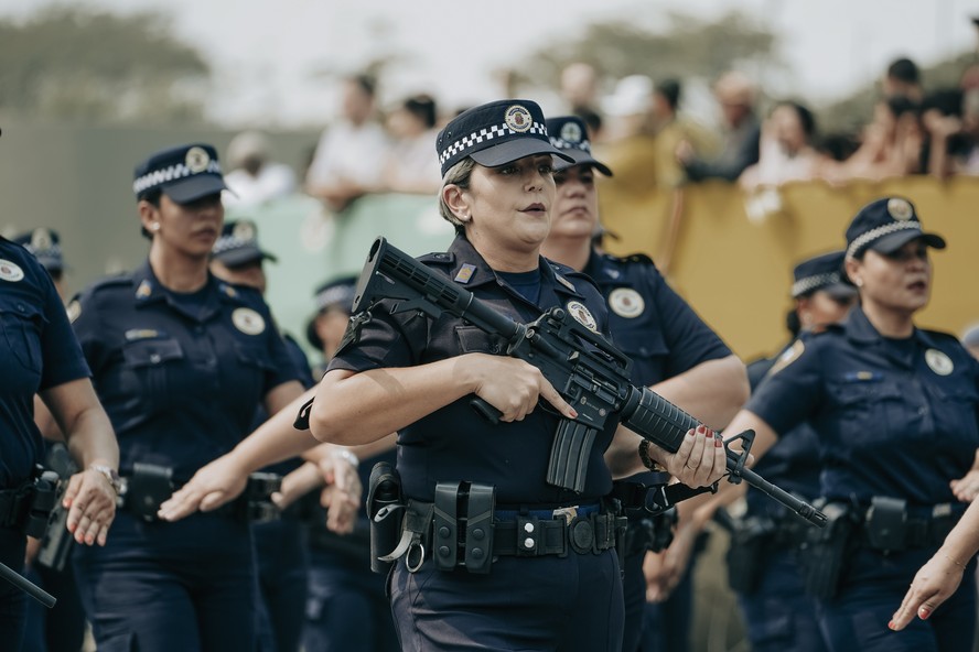 Guarda Civil Metropolitana em desfile do Sete de Setembro em São Paulo: efetivo municipal usa armas de grosso calibre — Foto: Richard Lourenço/Rede Câmara