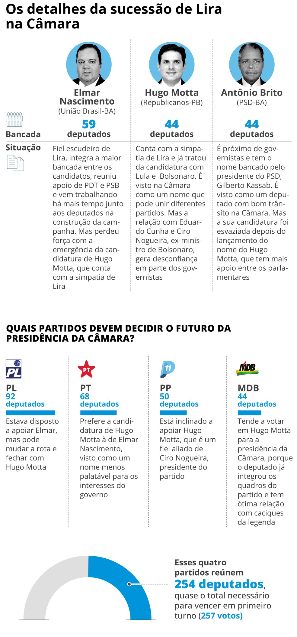 Infográfico: os movimentos de Elmar Nascimento,Hugo Motta e Antonio Brito de olho na sucessão de Arthur Lira na Câmara — Foto: Editoria de Arte