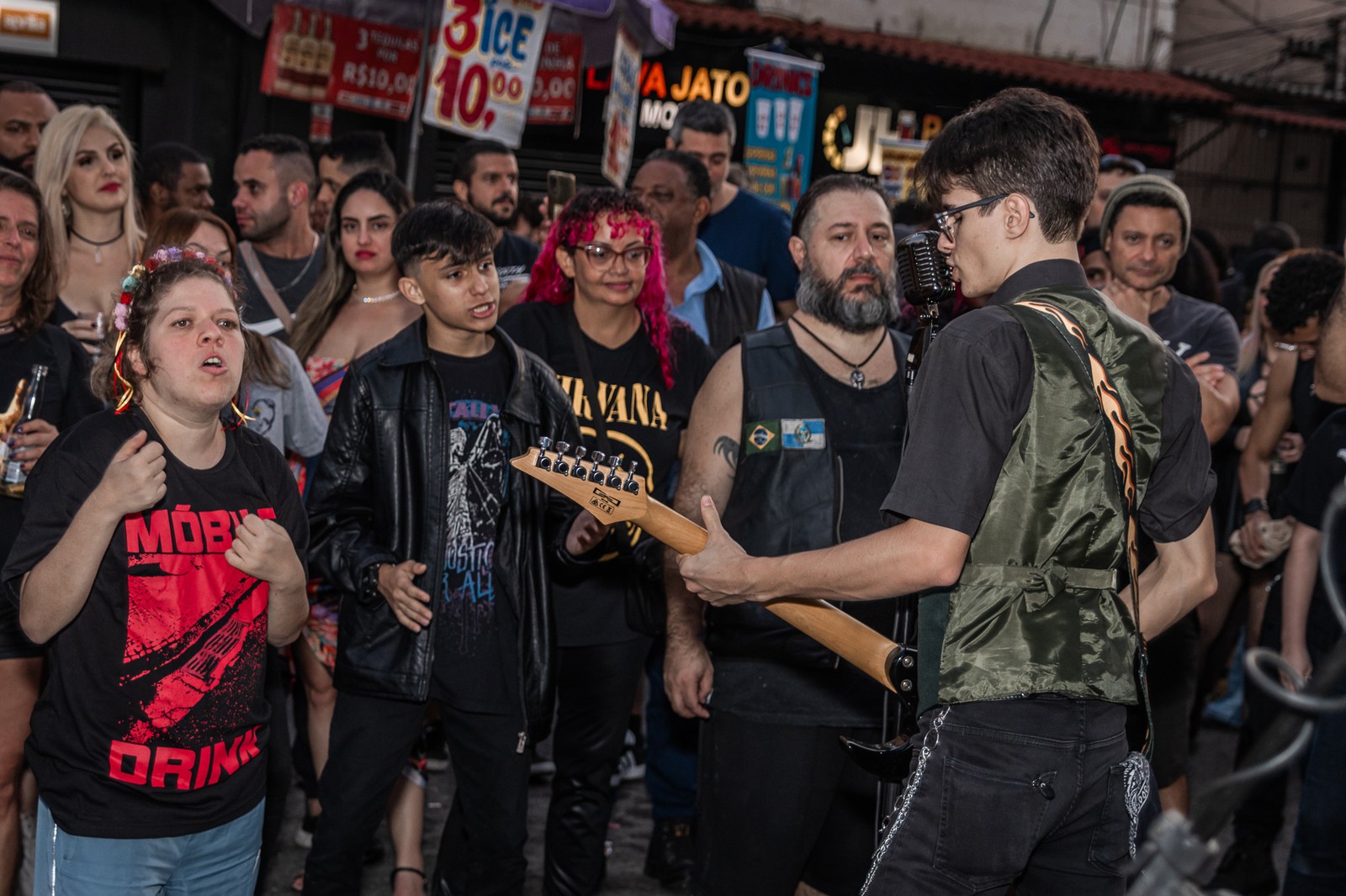 Galera vibrando com um dos 100 shows organizados para comemorar o Dia Mundial do Rock na Rua Ceará,na Praça da Bandeira — Foto: Divulgação/ Ian Dias