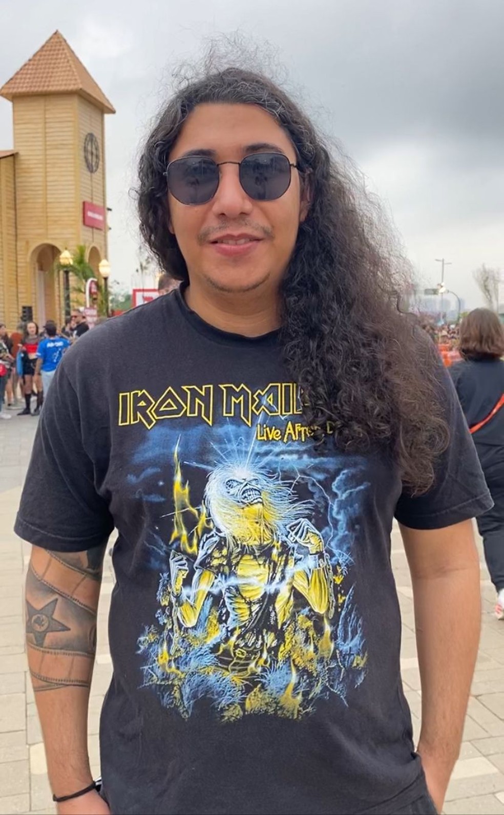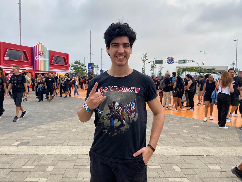 O estudante carioca Mickael Matos,de 16 anos,tem saudade de um tempo que não viveu: "a era de ouro do rock",ele diz. Acompanhado da tia,em seu primeiro Rock in Rio,diz o quanto gostaria de ter vindo na primeira edição,há 40 anos,quando tocaram grandes nomes do gênero,principalmente sua banda favorita,Iron Maiden,que estampava a blusa que ele escolheu para a estreia na Cidade do Rock. Mickael,como tantos outros metaleiros neste terceiro dia de festival,era um dos viúvos de Bruce Dickinson e companhia,grupo inglês que é a cara da Cidade do Rock. Eles vieram em cinco edições do evento: 1985,2001,2003,2013,2019 e 2022 — e mais uma apresentação era a expectativa de muita gente nesta edição de quatro décadas de aniversário.