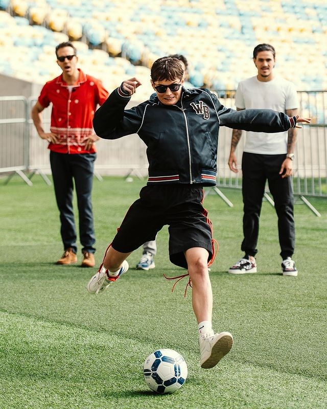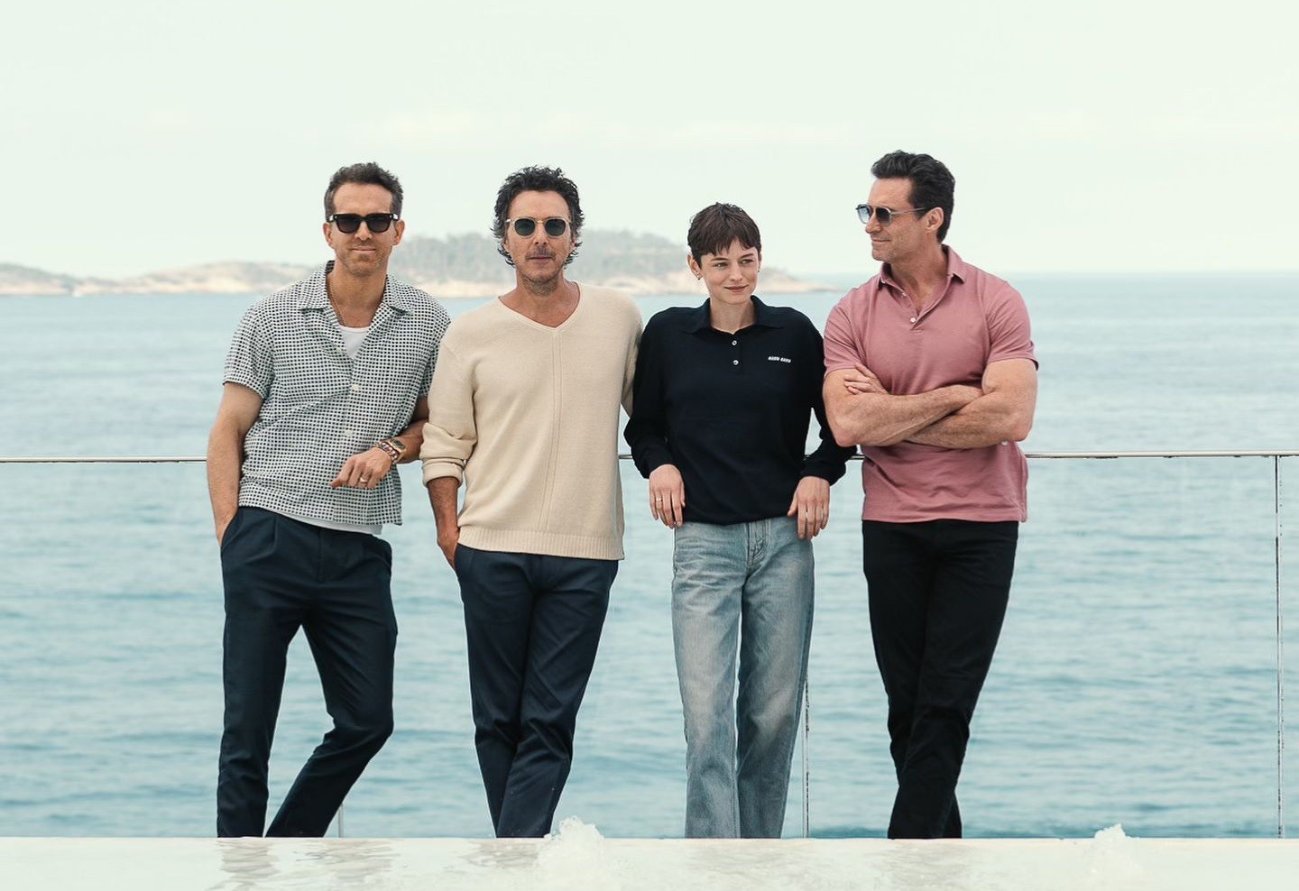 Ryan Reynolds,Hugh Jackman,Shawn Levy e Emma Corrin chegam no Maracanã,no Rio — Foto: Walt Disney Pictures / Divulgação
