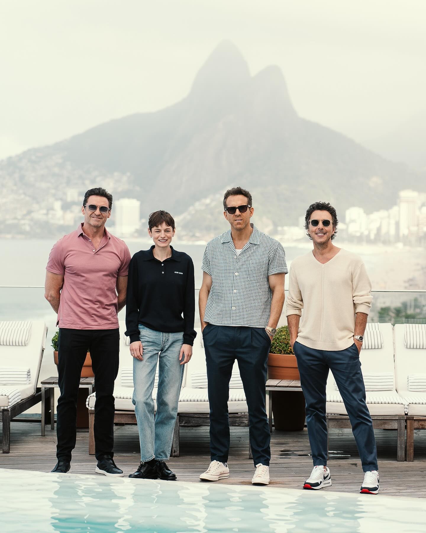 Ryan Reynolds,Shawn Levy,Emma Corrin e Hugh Jackman promovem "Deadpool & Wolverine" no Rio de Janeiro — Foto: Reprodução / Instagram
