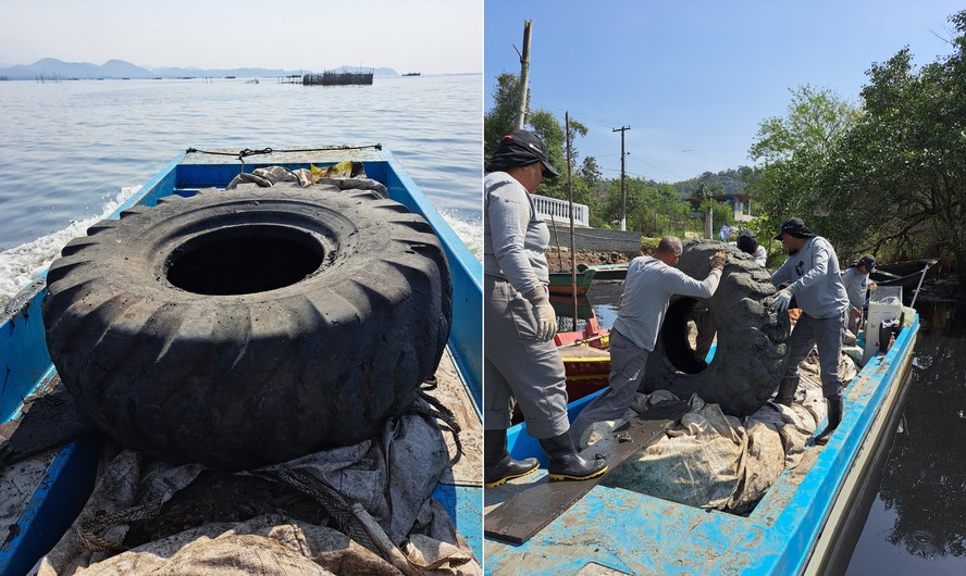 O objeto foi encontrado na chamada "Ilha de lixo" da Baia,área de 20 hectares coberta pelo lixo,chegando a um metro de profundidade em alguns pontos. Aparentemente,o pneu pertencia a um trator.