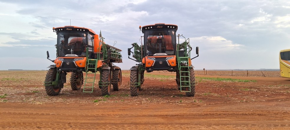 Tratores dedicados a pulverização de fertilizantes e defensivos agrícolas : safra pode chegar a 322 milhões de toneladas — Foto: Vinícius Neder/O Globo