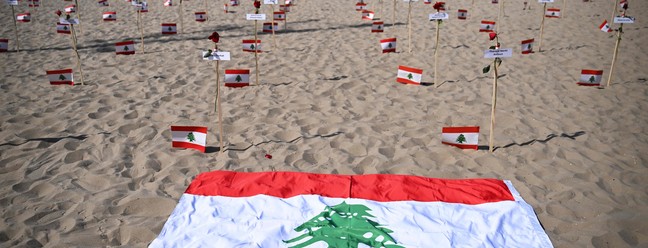 Rio de Paz presta homenagem a vítimas de explosão no Líbano,há três anos — Foto: Carl de Souza / AFP
