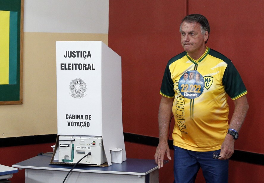 O ex-presidente Jair Bolsonaro vota no primeiro turno em seção eleitoral na Vila Militar,Zona Oeste do Rio — Foto: Alexandre Cassiano/O Globo