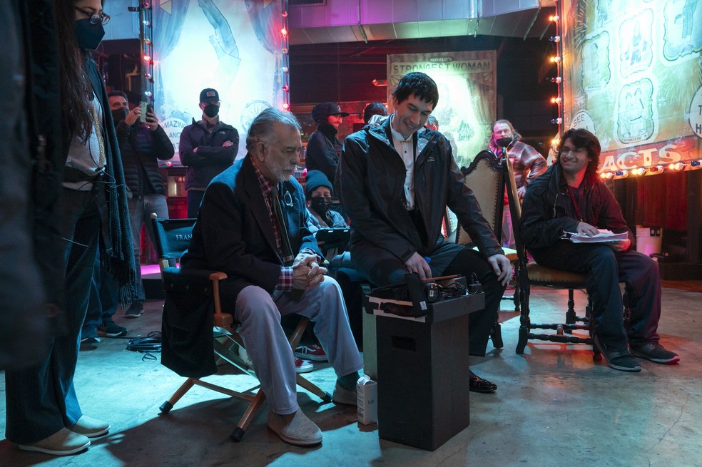 Francis Ford Coppola e Adam Driver nos bastidores de "Megalópolis" — Foto: O2 Play/ Divulgação