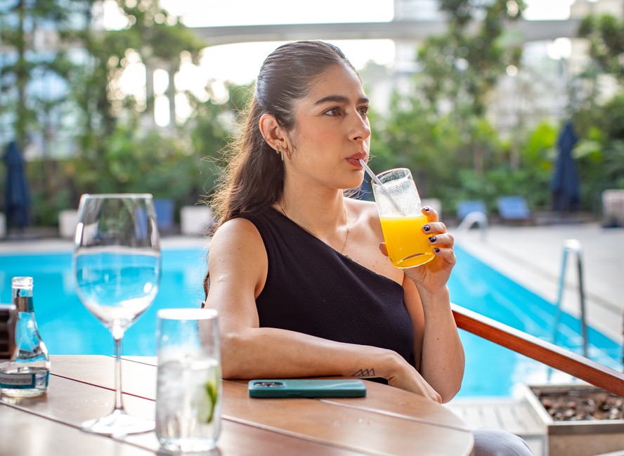 Giulia Wegbrayt,de 29 anos,evita bebidas alcoólicas. — Foto: Edilson Dantas / O Globo RESUMOSem tempo? Ferramenta de IA resume para você