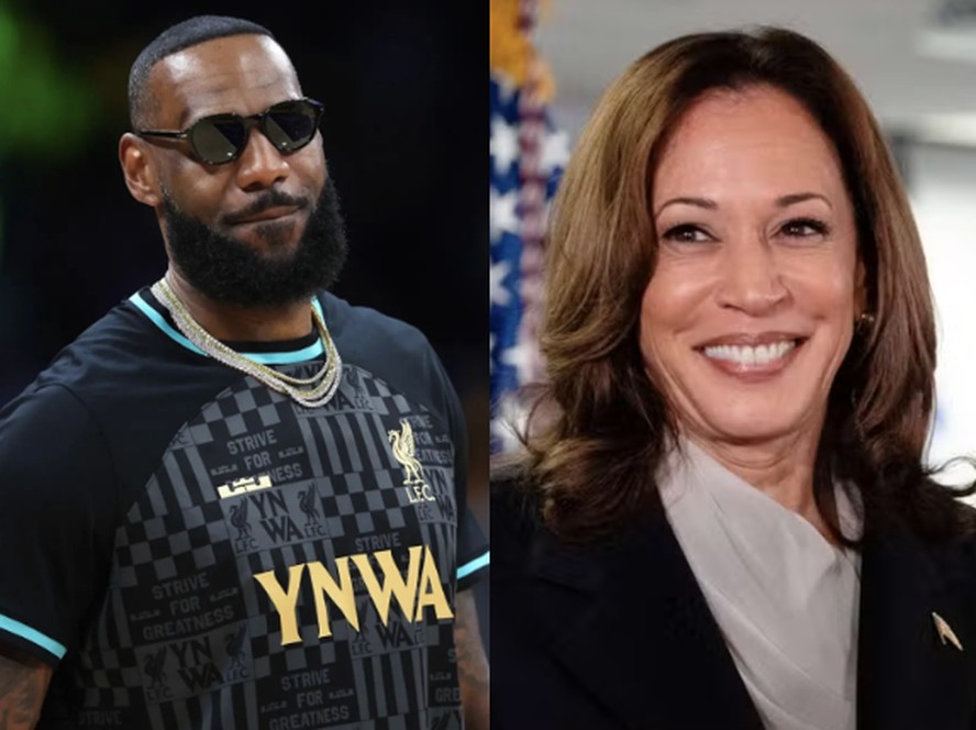Um dos principais astros do basquete e do esporte mundial,LeBron James declarou e pediu votos em Kamala Harris nas eleições presidenciais dos Estados Unidos. O craque dos Los Angeles Lakers publicou nas redes sociais um vídeo com trechos de discursos do adversário da democrata,o republicano Donald Trump,e ressaltou que,na visão dele,"a escolha é clara".