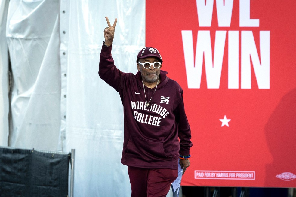 O cineasta Spike Lee fez campanha para Kamala durante evento em Clarkston,cidade na Geórgia. Na quinta-feira,a poucos dias da eleição,o cineasta disse à plateia que "não temos um momento a perder [...] se quisermos parar aquele outro cara",em referência a Trump. Lee vestia um moletom do Morehouse College,uma universidade historicamente negra em Atlanta.