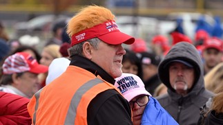 Apoiadores do presidente dos Estados Unidos,chegam ao evento de campanha do candidato em Michigan — Foto: ROBERTO SCHMIDT / AFP