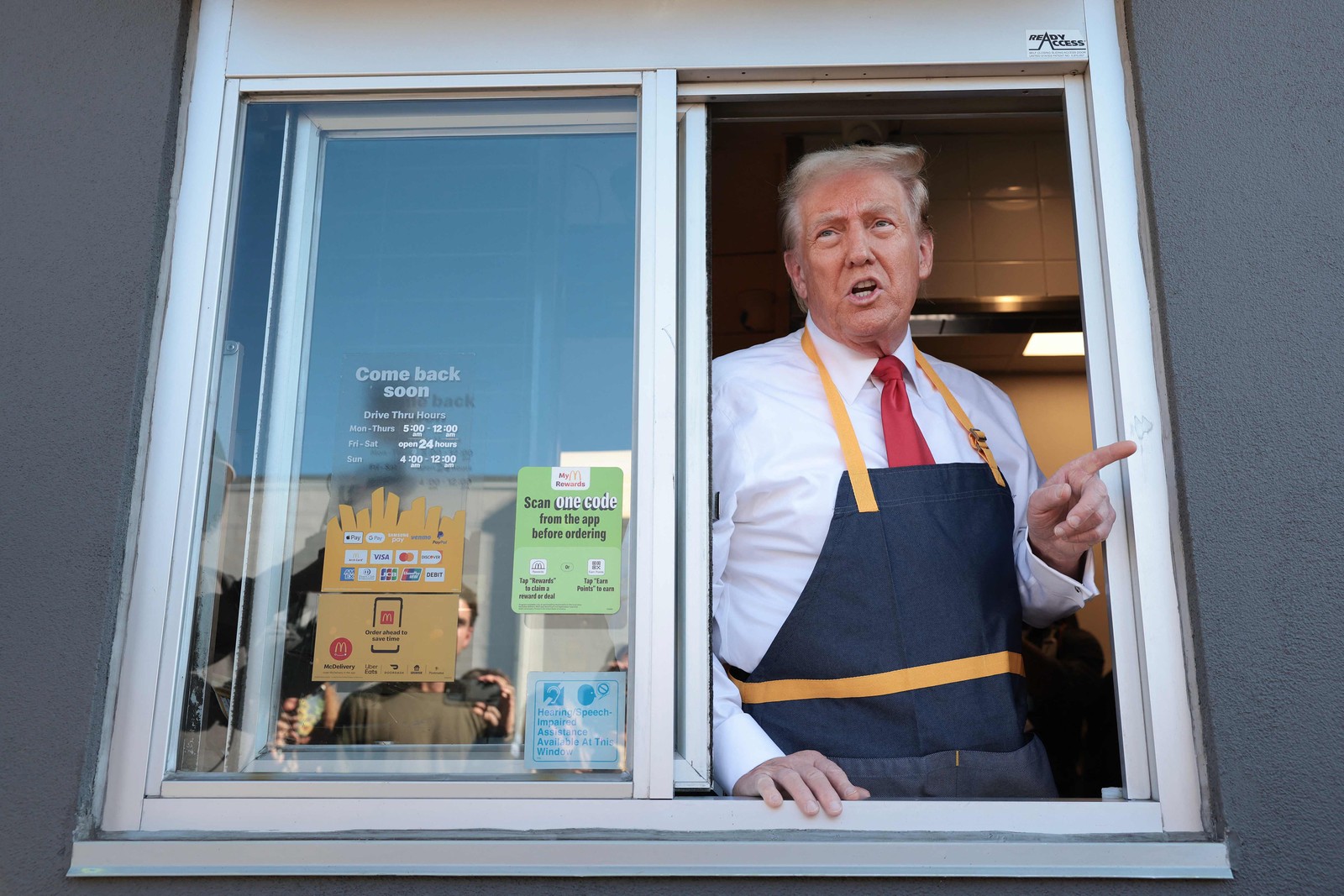 Trump em loja do McDonald's na Pensilvânia — Foto: Win McNamee/Getty Images/AFP