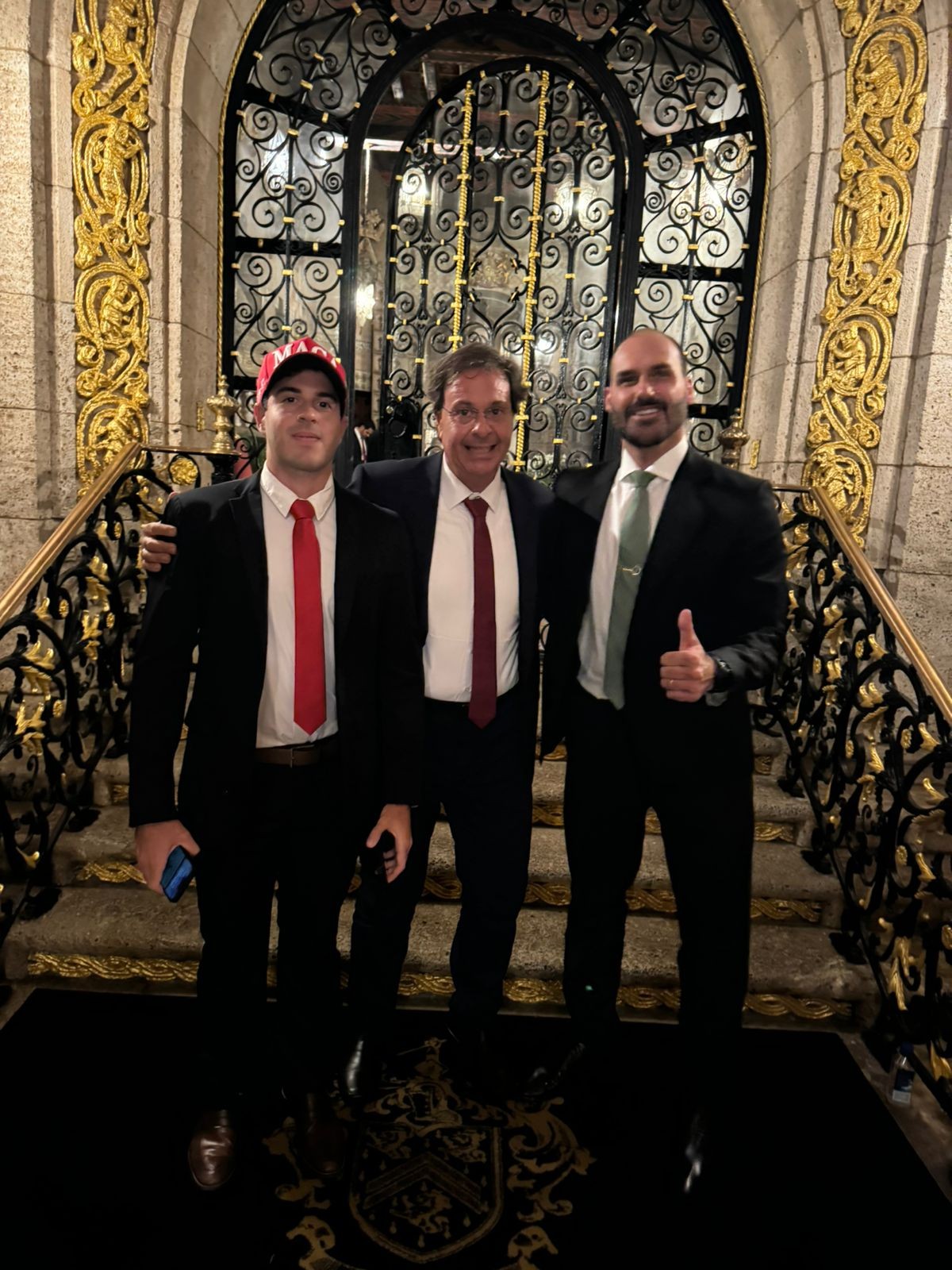 Da esquerda para direita: Gilson Machado Filho (PL),eleito vereador pelo Recife,o ex-ministro Gilson Machado e o deputado federal Eduardo Bolsonaro — Foto: Gilson Machado