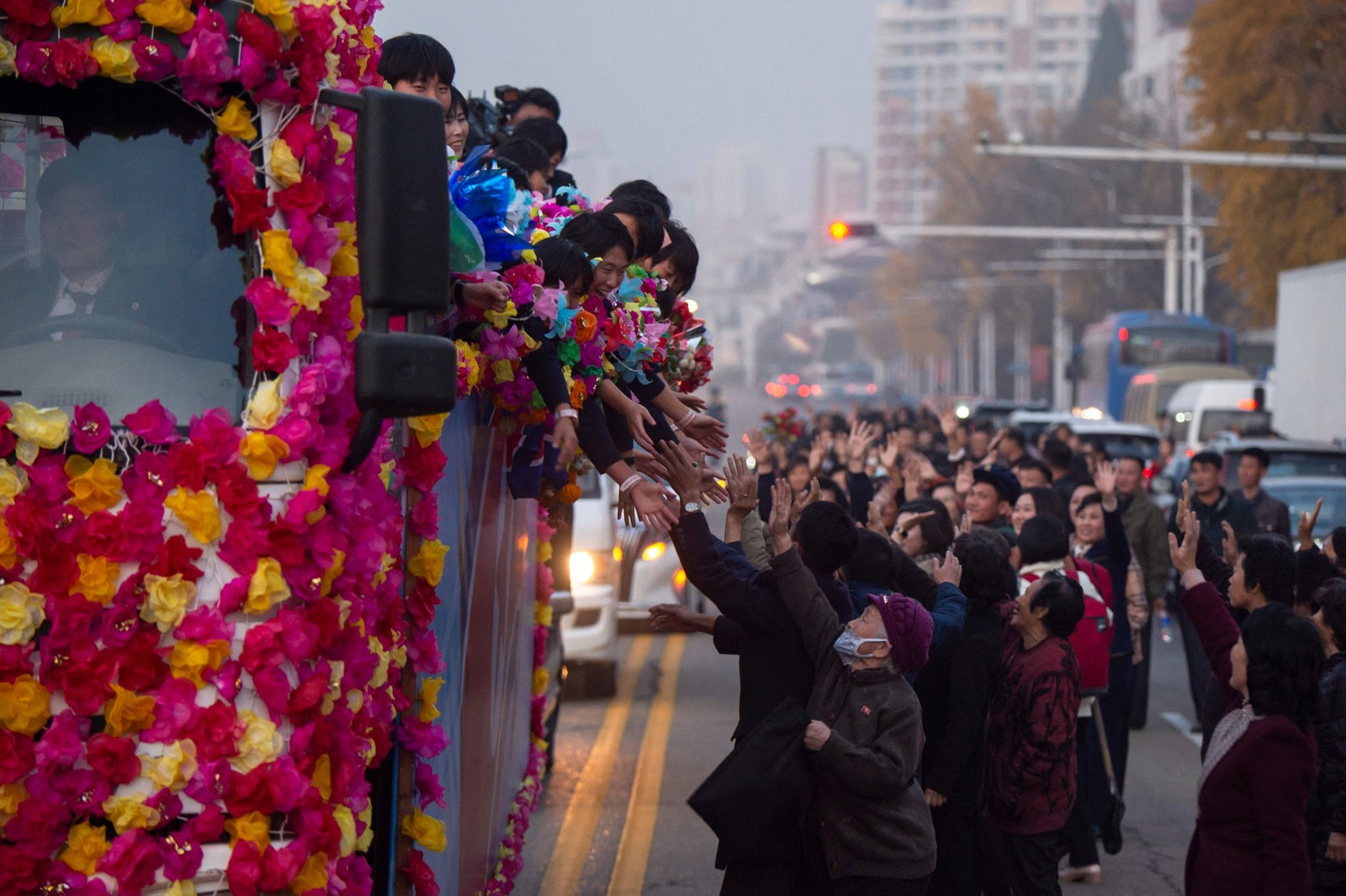 As jogadoras de futebol norte-coreanas campeãs da Copa do Mundo Feminina Sub-17 foram recebidas como heroínas na capital Pyongyang,mostraram imagens da AFP neste domingo,com centenas de pessoas nas ruas para comemorar o sucesso. Elas derrotaram a Espanha nos pênaltis após um empate por 1 a 1 na final da Copa do Mundo Sub-17,na República Dominicana,há uma semana.