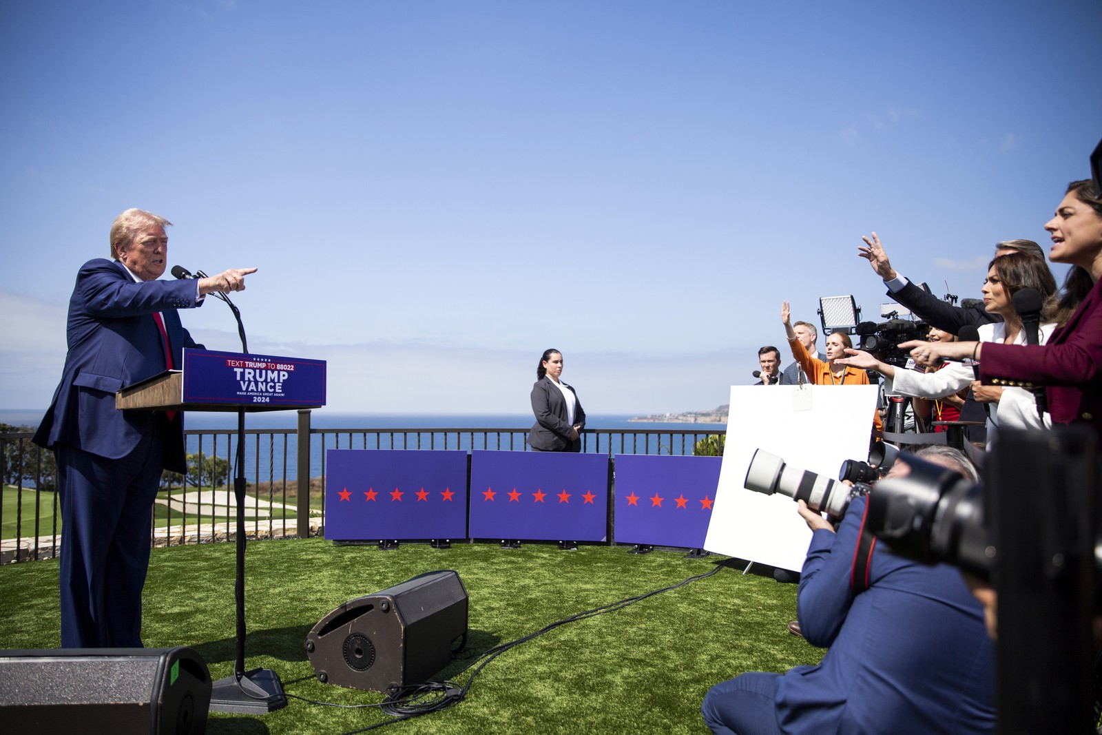 O ex-presidente dos EUA Donald Trump durante pronunciamento à imprensa em evento de campanha — Foto: Jenna Schoenefeld/NYT