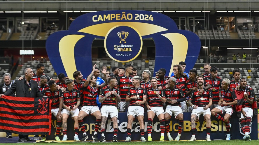 Elenco campeão da Copa do Brasil pelo Flamengo — Foto: Divulgação RESUMOSem tempo? Ferramenta de IA resume para você