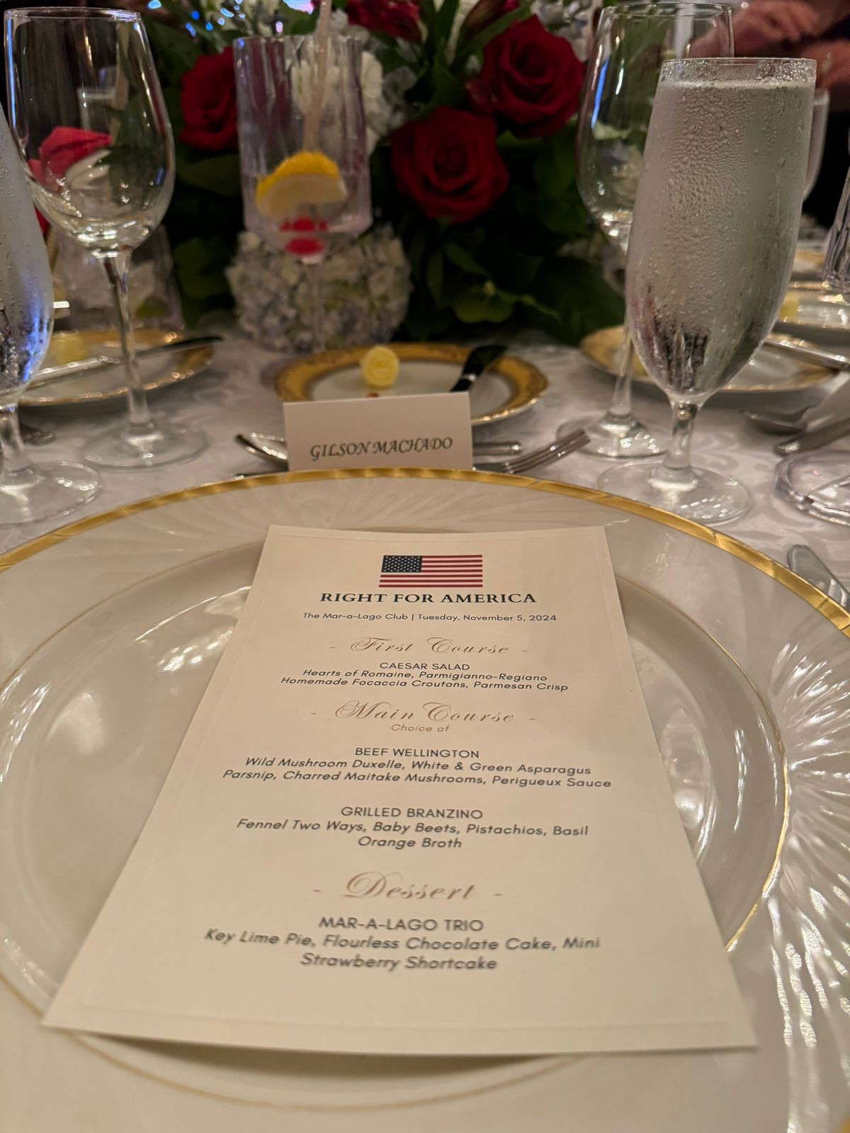O menu do jantar de Donald Trump com convidados em resort na Flórida — Foto: Gilson Machado