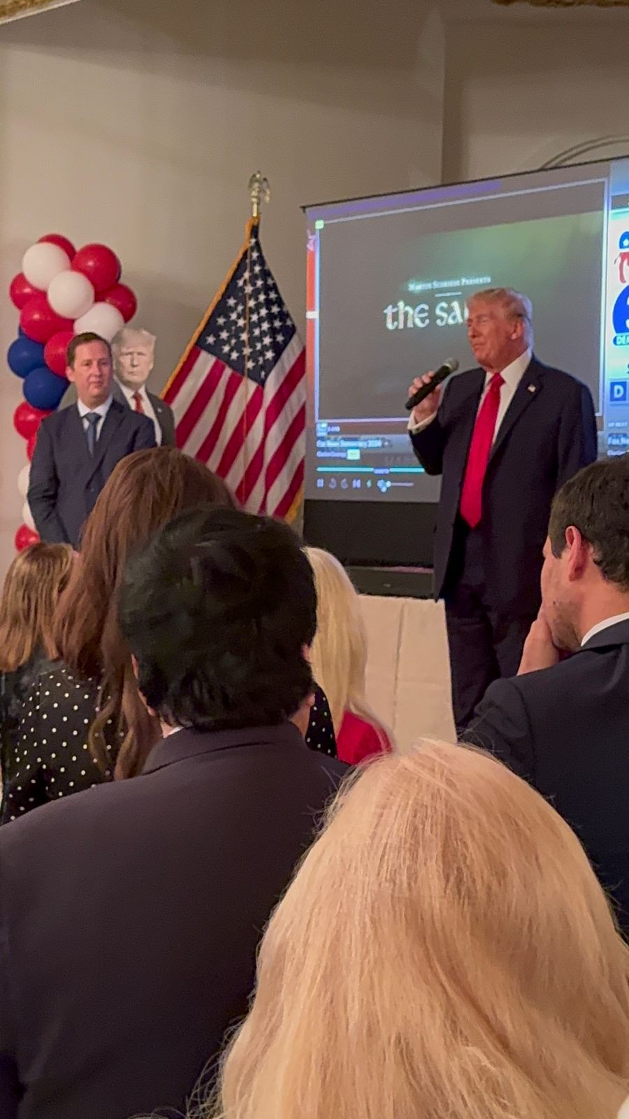 Trump discursa durante encontro reservado com doadores de campanha — Foto: Gilson Machado