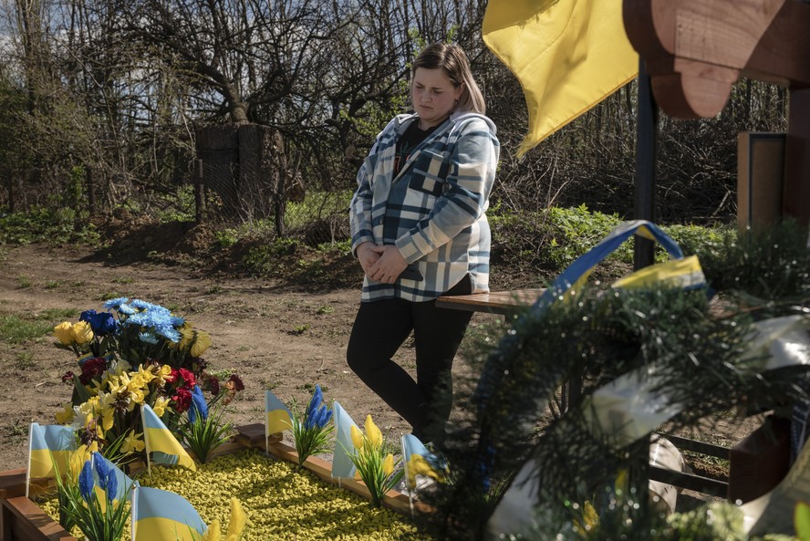 Iryna Sharhorodska,29 anos,sempre contou tudo ao marido. Sua morte não mudou isso: há mais de um ano,ela visita seu túmulo diariamente para falar com ele.