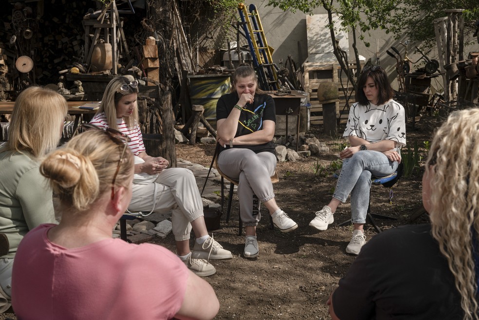 Em uma sexta-feira de abril,Zvir sentou-se com cerca de duas dúzias de mulheres e seus filhos em um retiro de terapia de grupo organizado pelo projeto Unbroken Mother em Morshyn,na Ucrânia.