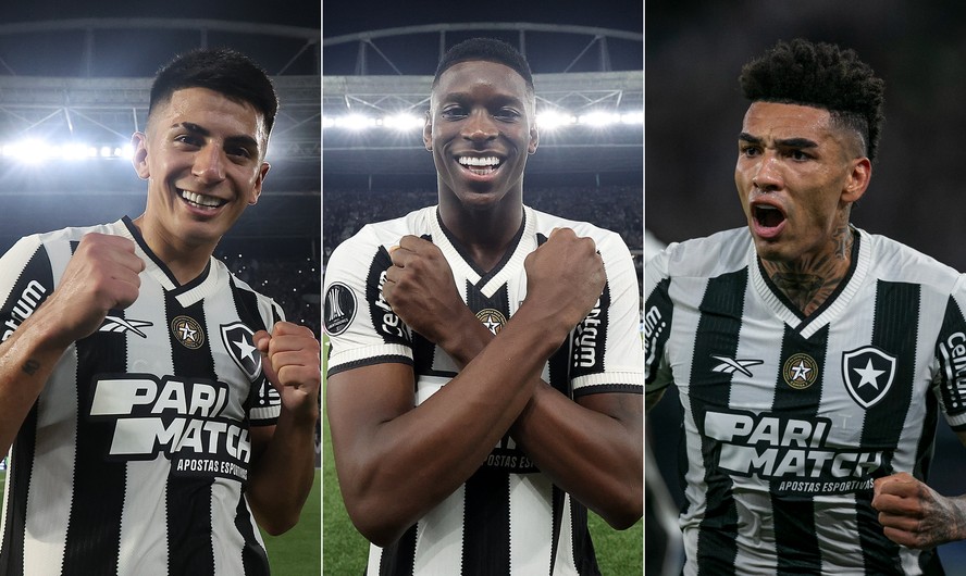 Almada,Luiz Henrique e Igor Jesus podem aparecer no futebol europeu em 2025 — Foto: Vitor Silva/Botafogo; Vitor Silva/Botafogo; Guito Moreto/Agência O Globo