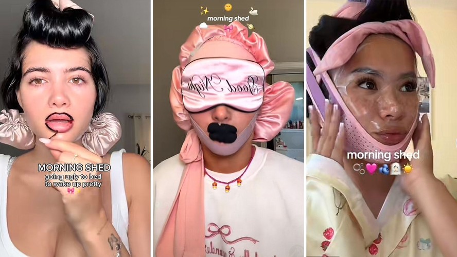 "Quanto mais feia você for dormir,mais bonita vai acordar." Assim é o dilema da tendência “Morning Shed”,que conquista cada vez mais adeptos no Tik Tok. Trata-se de um ritual noturno exagerado com uma combinação de produtos e ferramentas que buscam intensificar os cuidados com a pele e os cabelos. O processo envolve o uso de máscaras faciais,adesivos anti-idade,cremes e toucas de seda. A promessa é acordar com a pele rejuvenescida e os cabelos sem frizz. No entanto,a técnica pode ferir a epiderme (camada exterior da pele) e nem sempre é positiva para o sono.