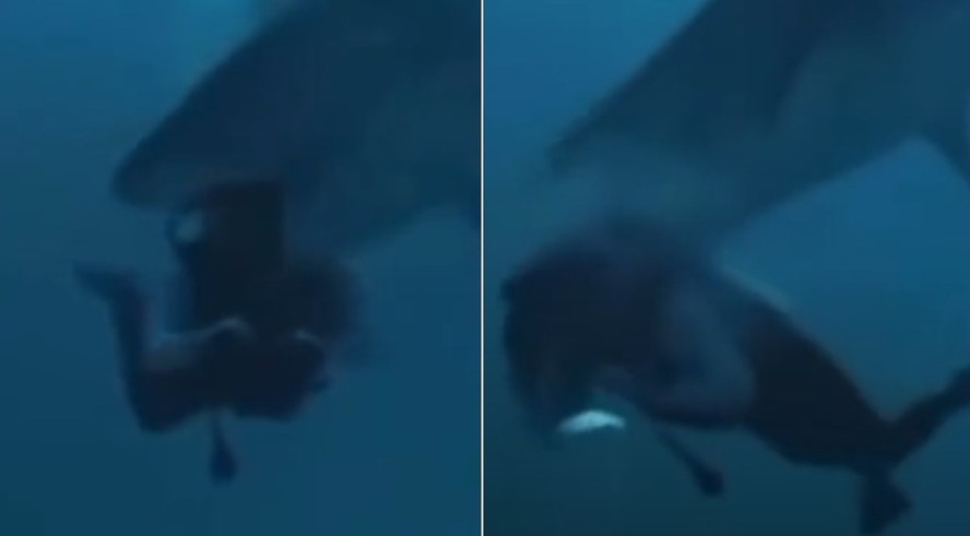 Vídeo mostra momento em que um tubarão-tigre ataca um turista que mergulhava nas Maldivas — Foto: Reprodução