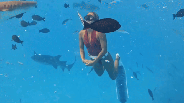 Influenciadora é atacada durante mergulho com 50 tubarões-lixa nas Maldivas — Foto: Reprodução