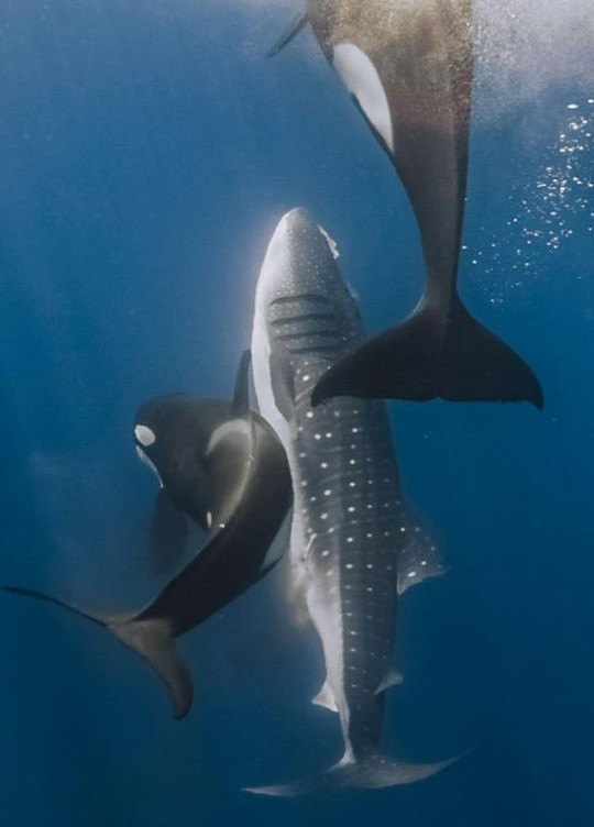 No Golfo da Califórnia,apesar de as orcas já serem observadas predando raias e tubarões menores,a inclusão dos tubarões-baleia como presas frequentes levanta a hipótese de uma especialização ecológica dessa população. — Foto: Kelsey Williamson