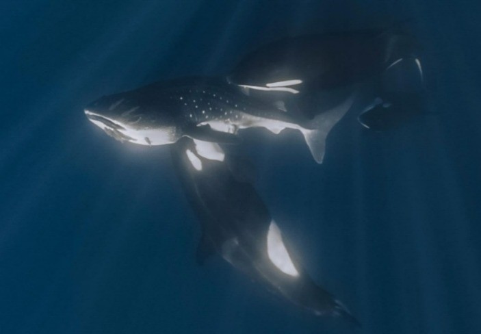Registros mostram técnica usada por orcas para atacar tubarões-baleia — Foto: Kelsey Williamson