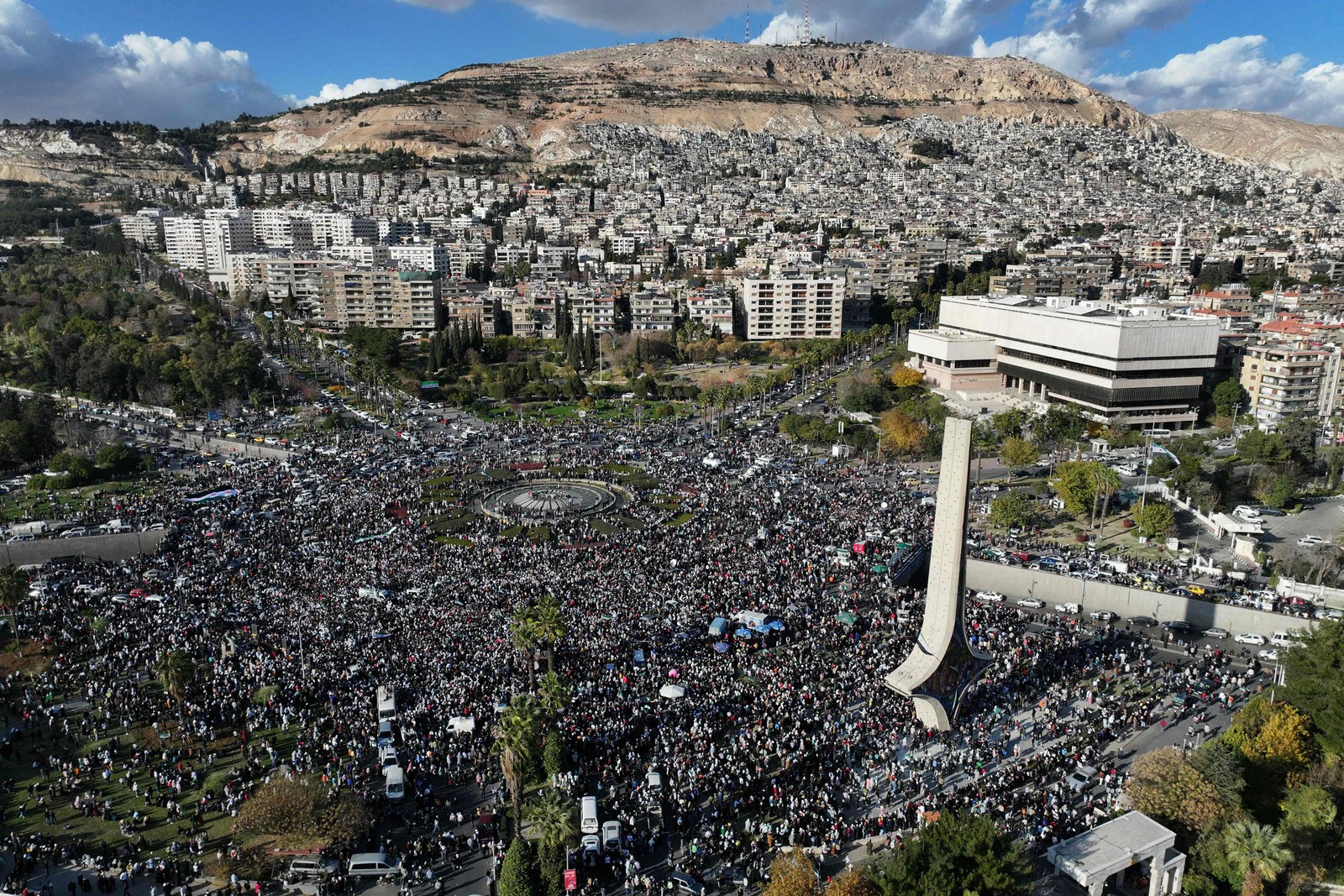 Vista aérea da Praça Umayyad,em Damasco,nesta sexta-feira (13) — Foto: OMAR HAJ KADOUR / AFP
