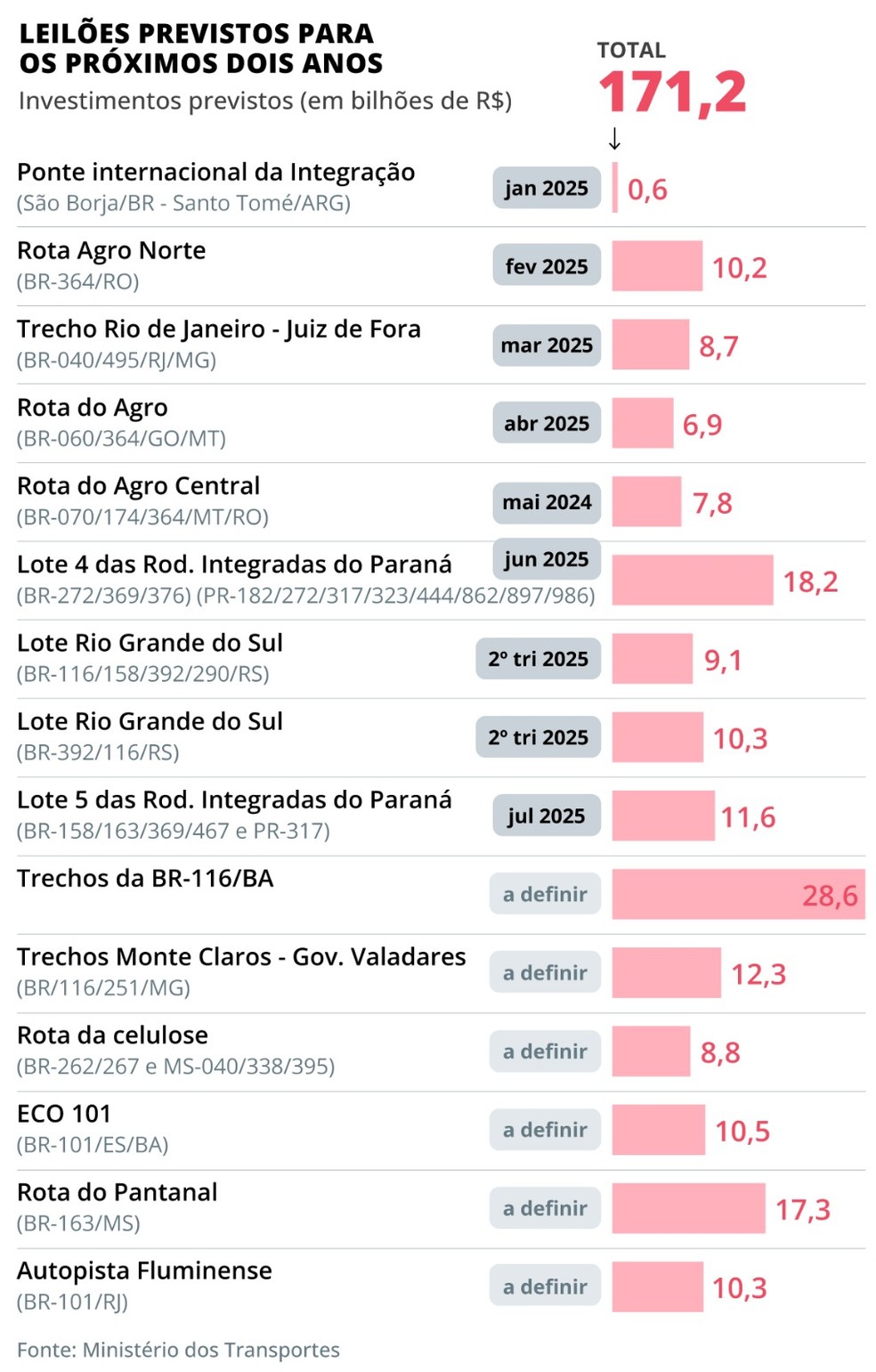Leilões previstos para os próximos dois anos — Foto: Editoria de arte