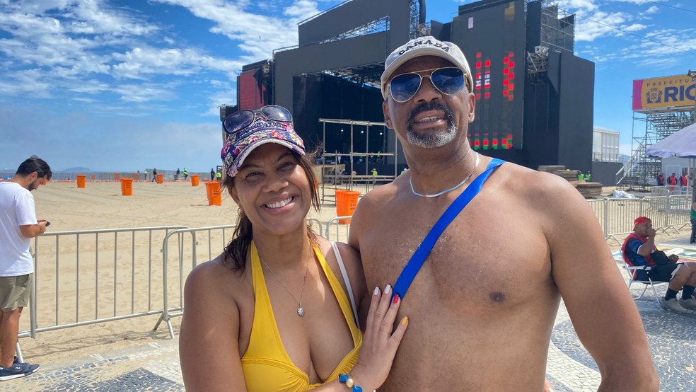 O casal Solange Loureiro e Willian Vianna,de São Paulo,veio ao Rio para o réveillon — Foto: João Vitor Costa