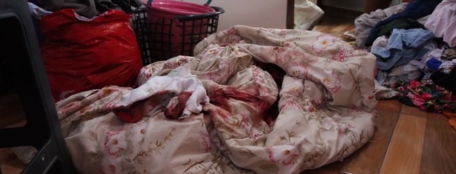Lençol sobre o qual Eloah Santos brincava ao ser atingida — Foto: Renato Moura/Voz das Comunidades
