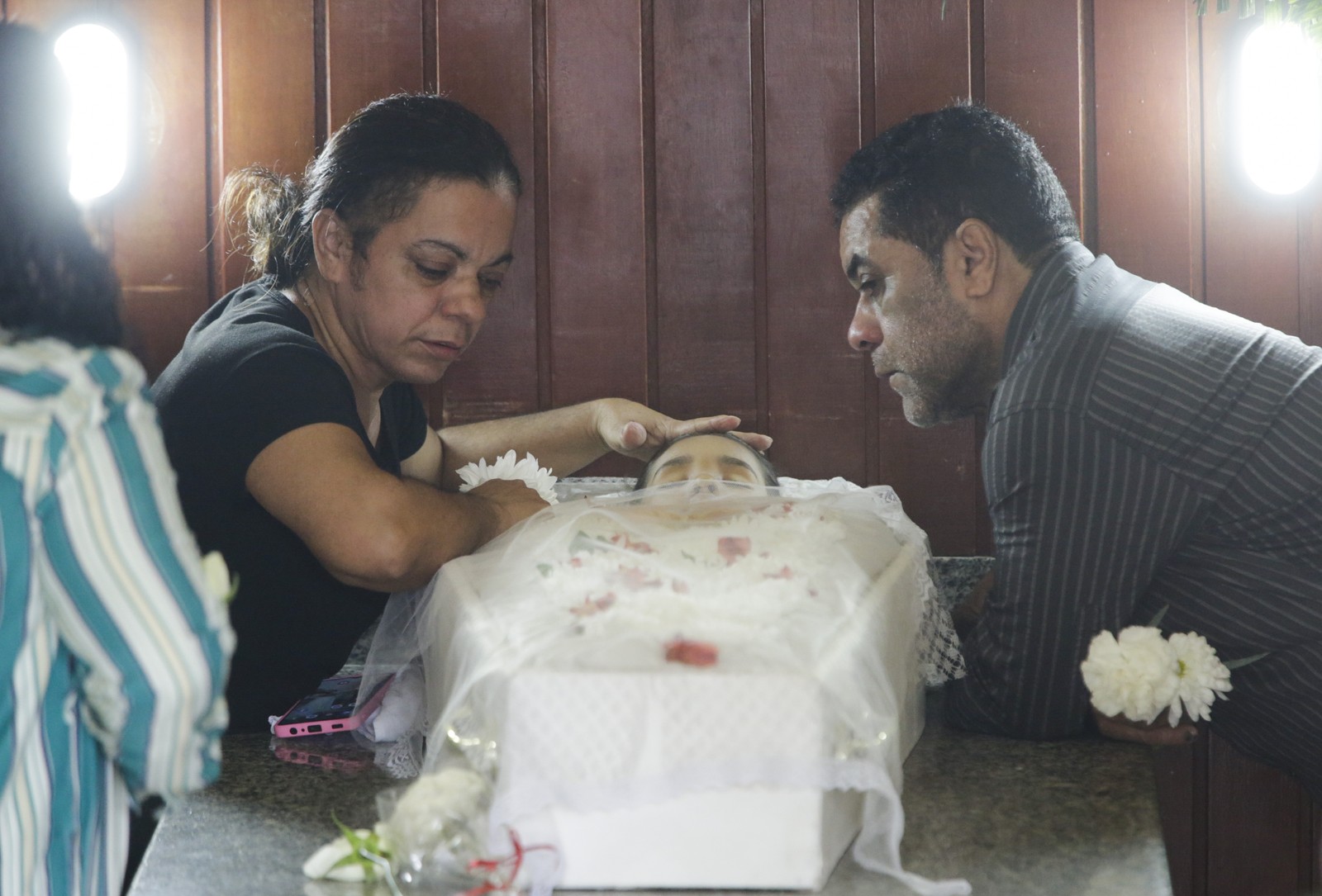 A avó de Eloah,Simone,e o tio,Robson,no enterro da menina Eloah Santos