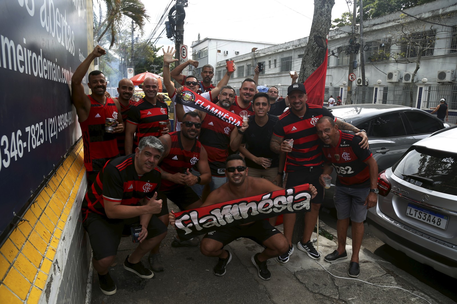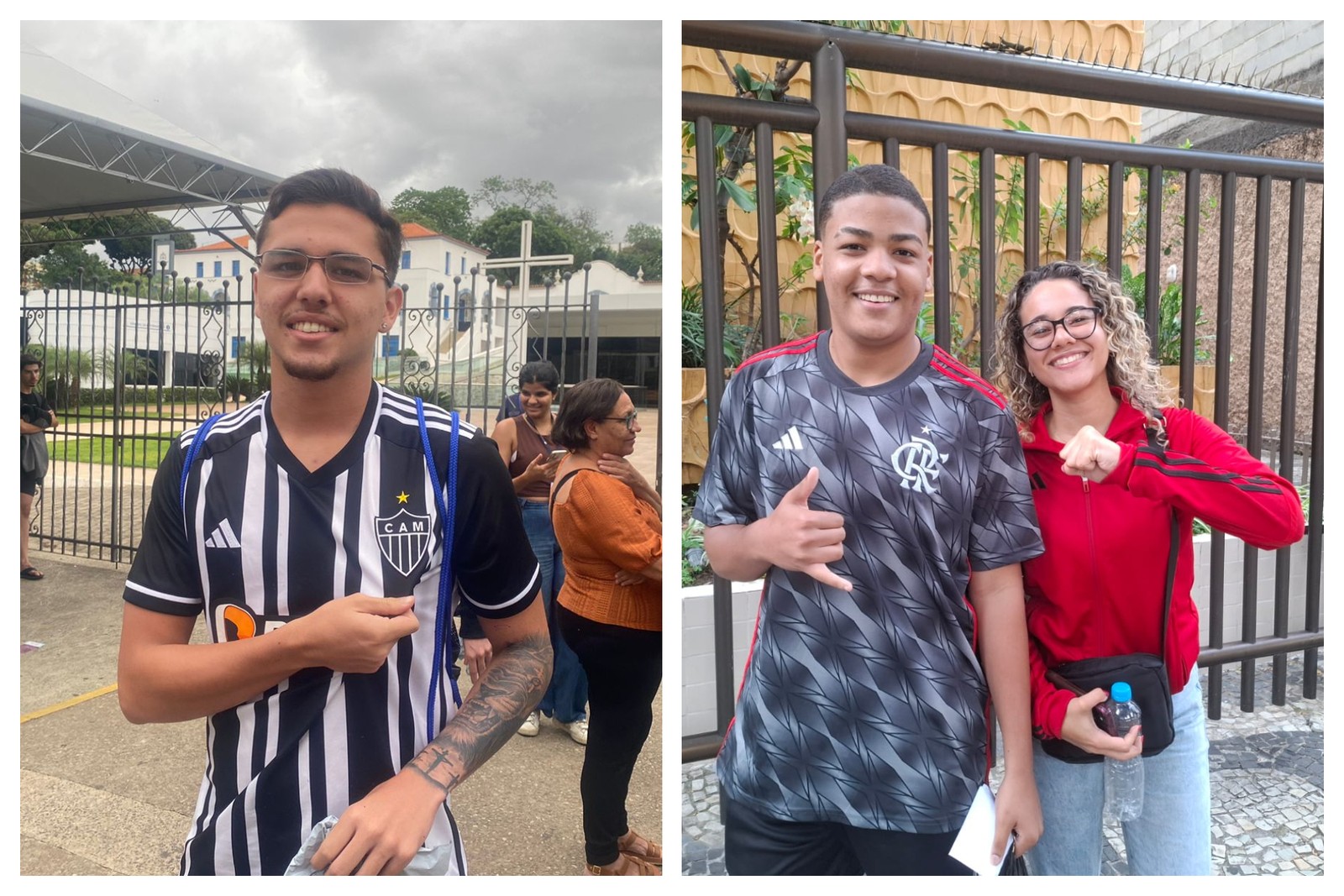 O atleticano Guilherme Costa e os flamenguistas Wesley do Santos e Eduarda Linhares deixam prova do Enem para assistir final da Copa do Brasil — Foto: Carol Campos e Walter Farias