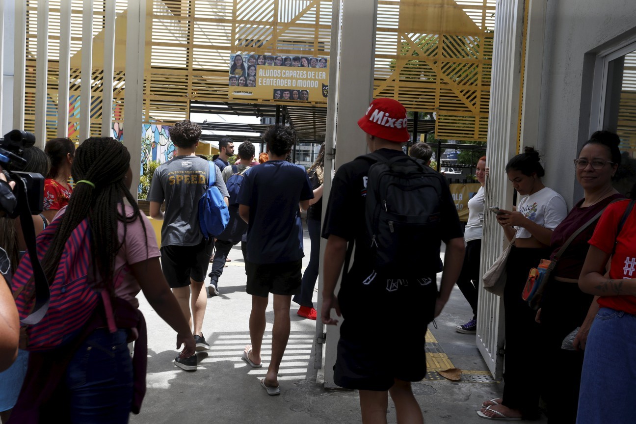 Entrada dos candidatos do Enem no Rio — Foto: Gabriel de Paiva RESUMOSem tempo? Ferramenta de IA resume para você