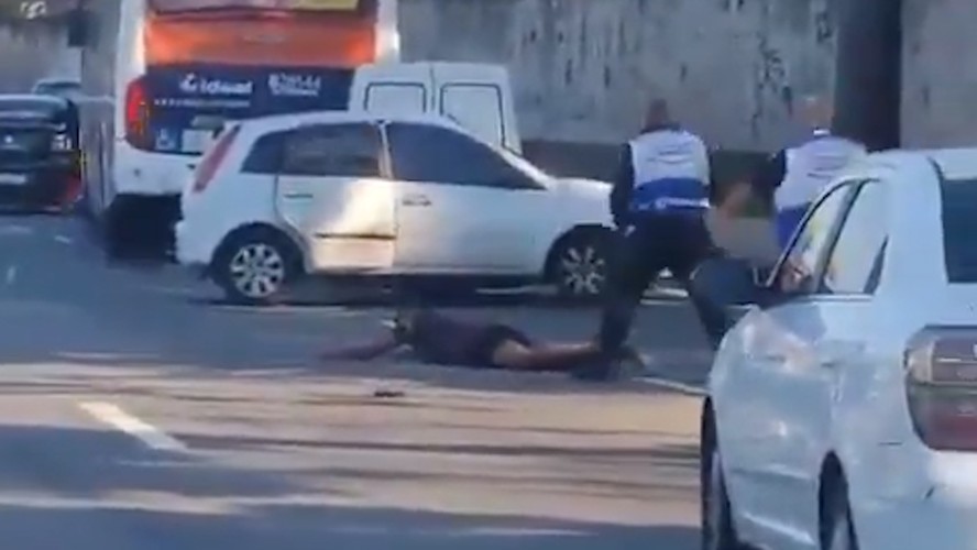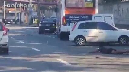 Um vídeo que circula nas redes sociais mostra a troca de tiros,motoristas de outros veículos agachados atrás dos próprios carros e um policial se aproximando. Quando o homem é atingido,uma pessoa comemora a ação da polícia.
