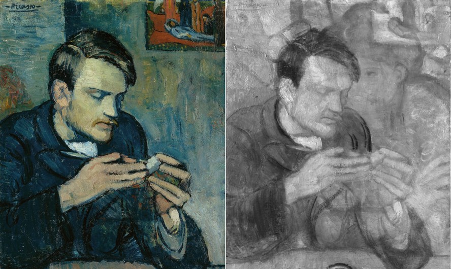 Uma das principais obras do Período Azul de Pablo Picasso (1881-1973),“Retrato de Mateu Fernández de Soto”,esconde uma outra personagem há mais de um século. Foi o que revelaram exames de raio-x e infravermelho realizados pelo Instituto de Artes de Courtauld,de Londres. Produzida pelo artista espanhol em 1901,quando ele tinha apenas 19 anos,a tela de tons azuis melancólicos oculta a imagem de uma mulher misteriosa.