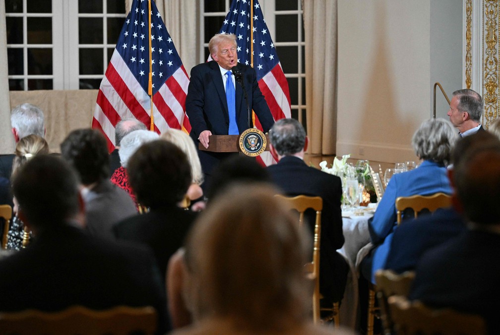 Trump em jantar com senadores em Mar-a-Lago,na Flórida — Foto: ROBERTO SCHMIDT / AFP