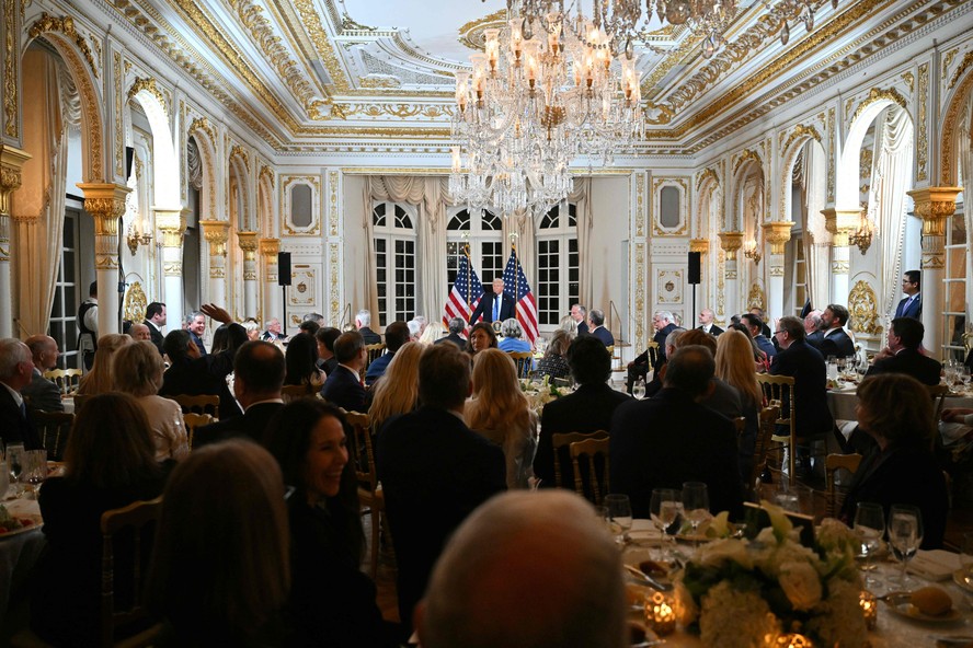 Trump em jantar com senadores em Mar-a-Lago,na Flórida — Foto: ROBERTO SCHMIDT / AFP RESUMOSem tempo? Ferramenta de IA resume para você
