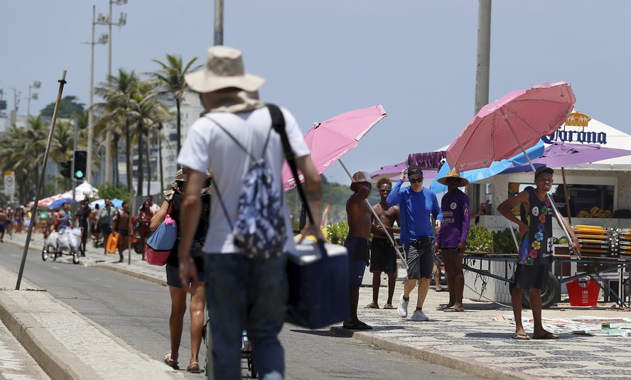 Chapéus,bonés e guarda-sóis: carioca precisa de proteção contra o sol forte e o calor — Foto: Fabiano Rocha / Agência O Globo