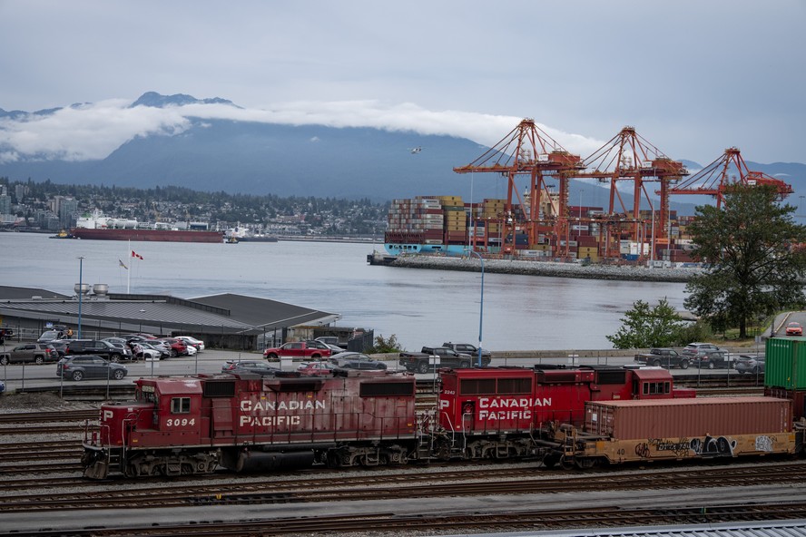 Locomotiva da Canadian Pacific Railway no Porto de Vancouver em Vancouver,Colúmbia Britânica — Foto: Ethan Cairns/Bloomberg