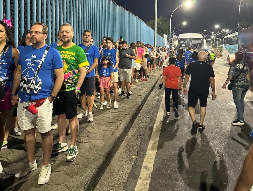 A fila estava longa na entrada para a Marquês de Sapucaí — Foto: Reprodução RESUMOSem tempo? Ferramenta de IA resume para você